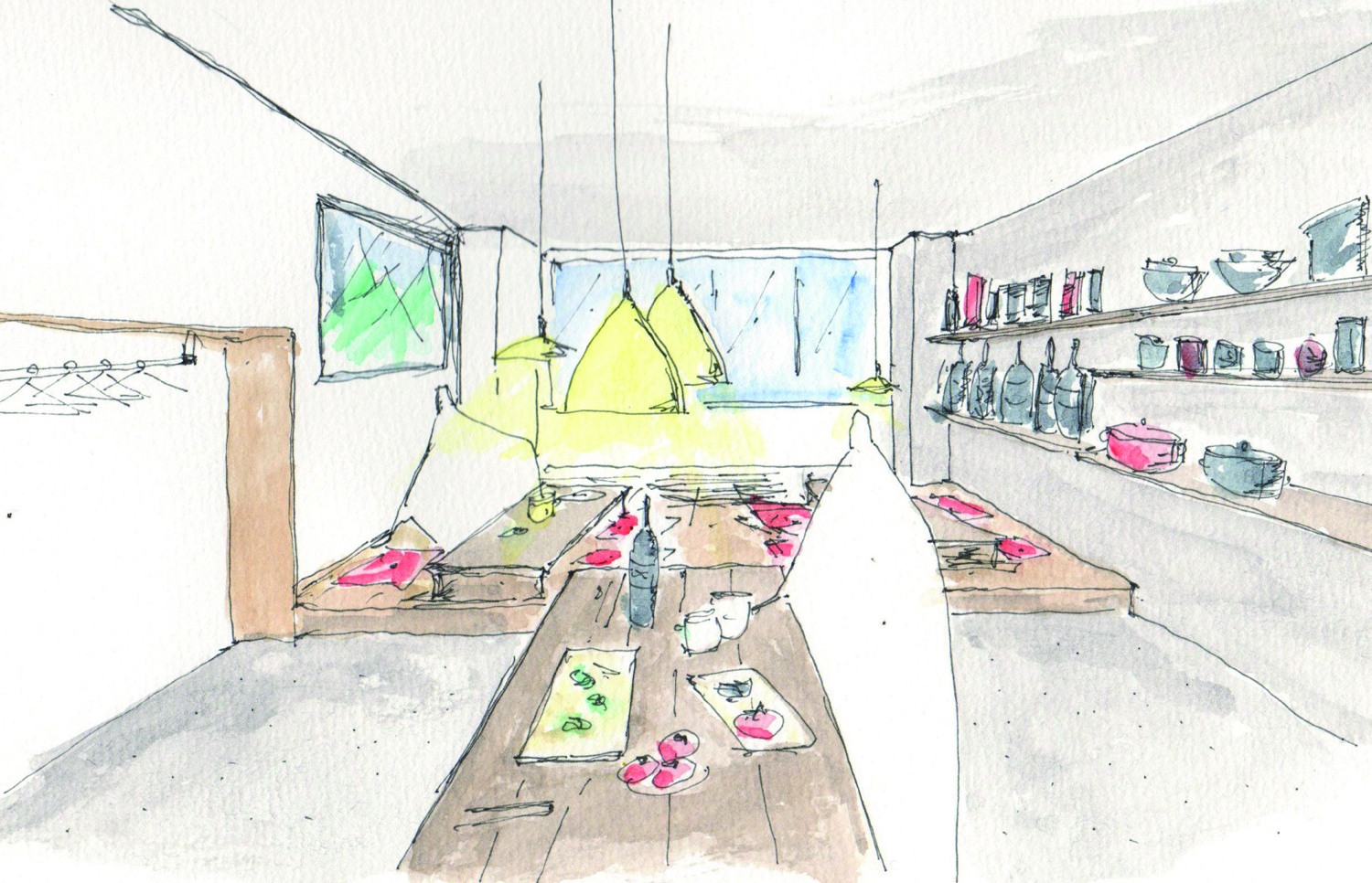 そのような立地のポテンシャルを生かして時間貸しの「シェアキッチン」をつくります。周辺店舗から購入したものを持ち寄って飲食することやみんなで調理して食べるとこもできる場所。そしてお昼はママ友たちが集まってワイワイしても良いし、料理研究家による料理教室もできる。使い方はそれぞれに活用していただけるようなスペースです。