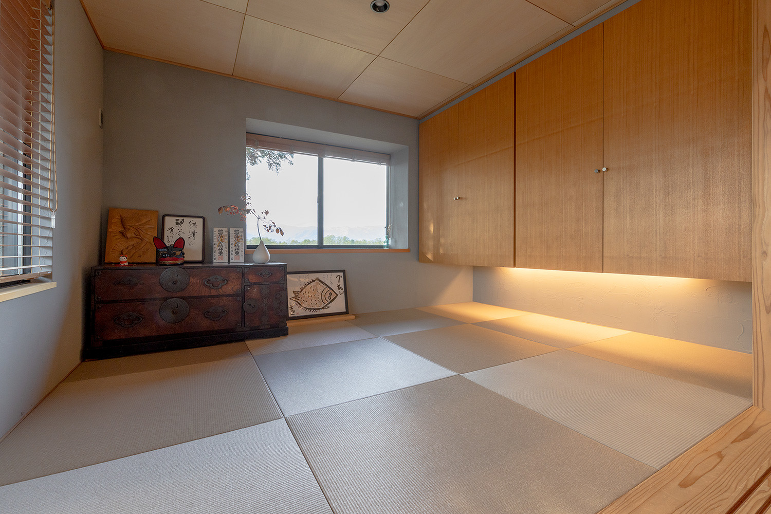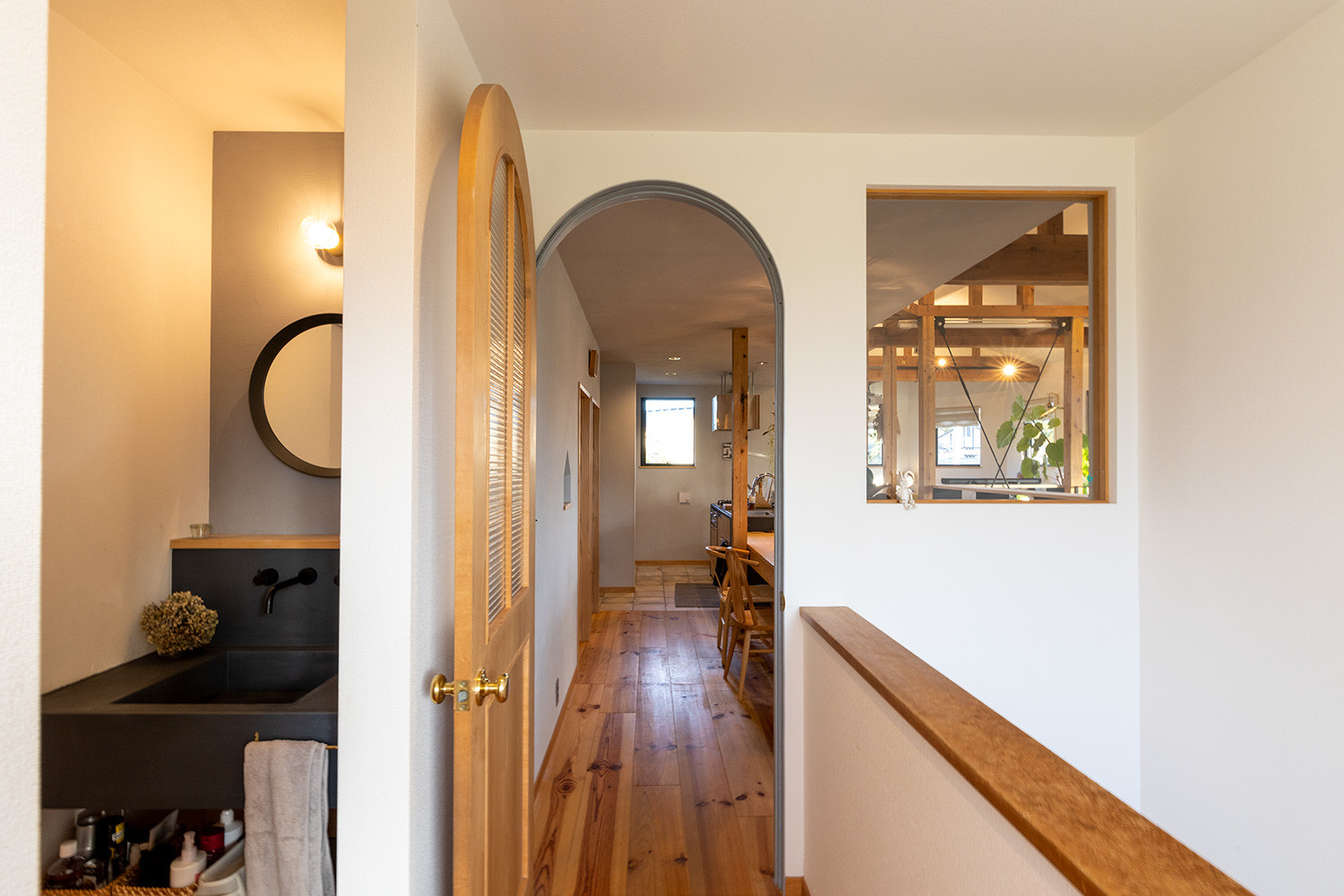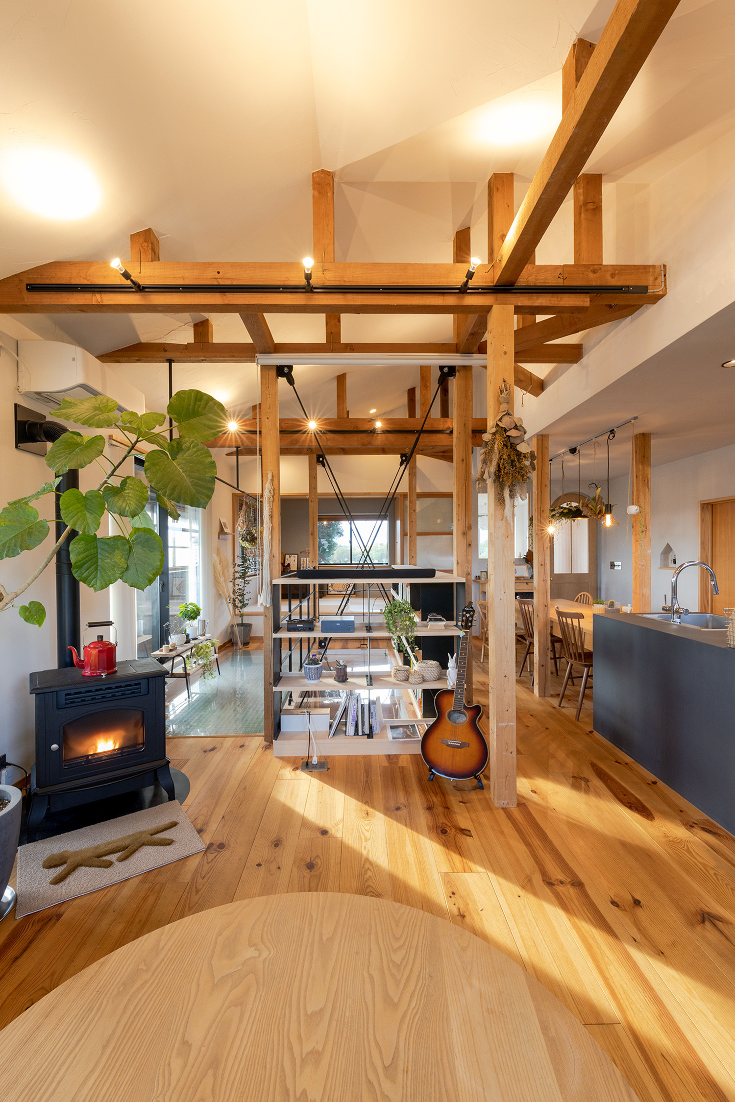 リノベーションをする前、2階は壁で部屋が仕切られていました。ところが今は、階段を上がって扉を開けると大きな空間が広がります。空間の印象をつくる建具やインテリアからは、夫婦がこだわりを持ちながら楽しんで選んできたのが伝わるものばかり。