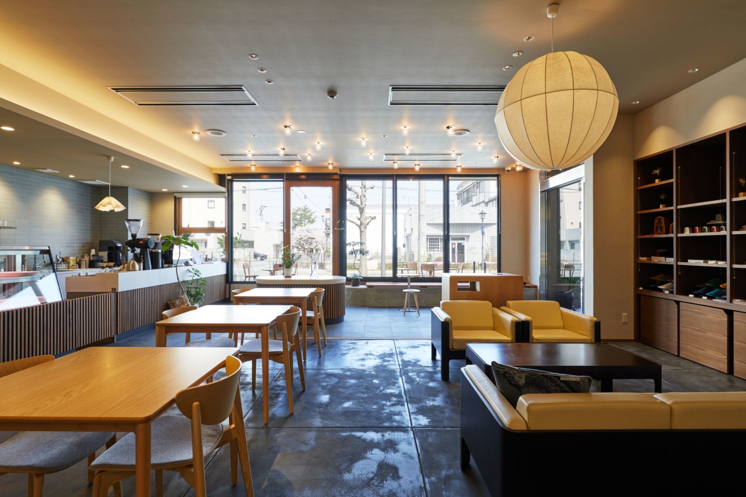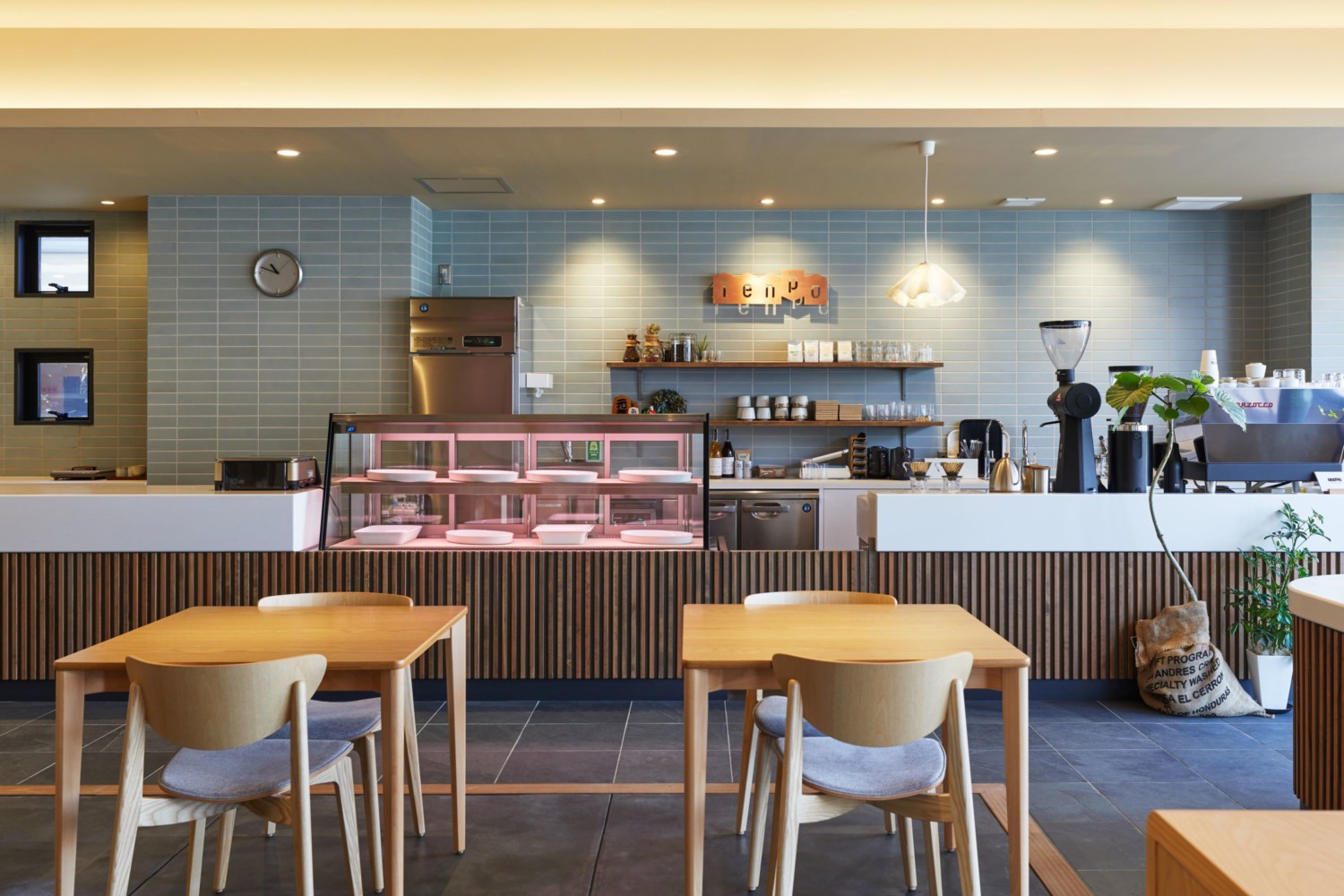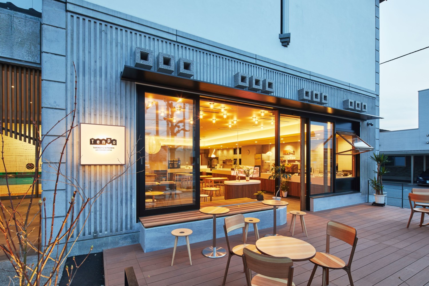 天童温泉の老舗旅館「ほほえみの宿 滝の湯」が手がけるカフェ。店名である「Tenpo(テンポ)」には、天童の街歩き「天歩(てんぽ)」がより楽しくなるようにという願いが込められている。