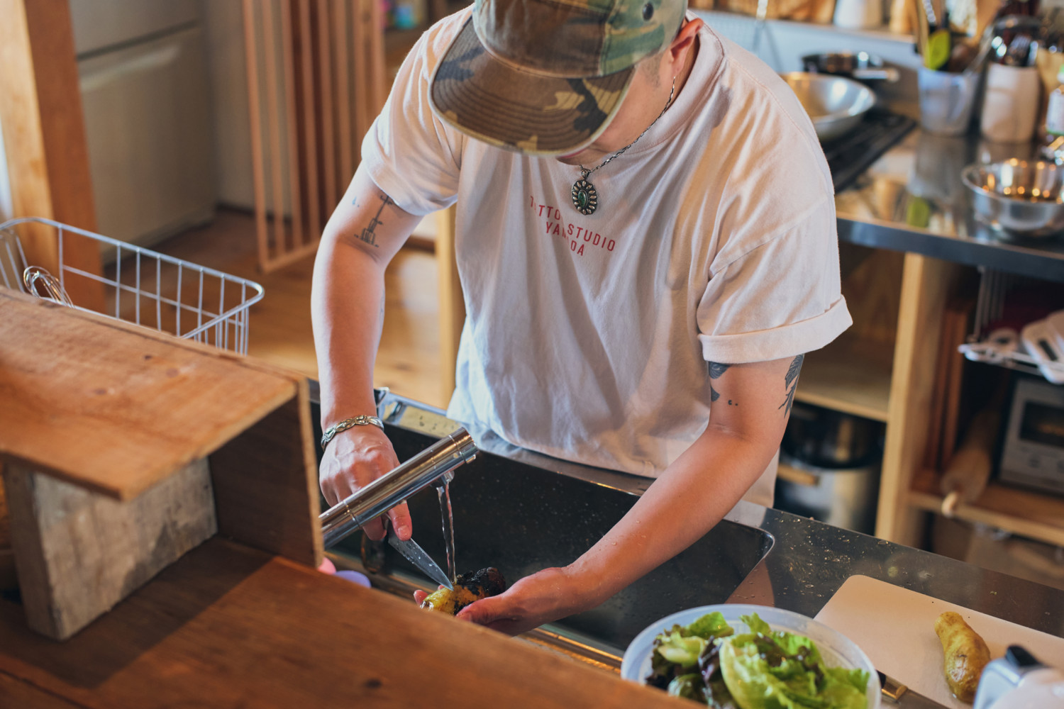 施工に向けて解体を進めるなかで、建物にさまざまな課題があることがわかり、当初の想定を超える費用が必要になりました。そこで2階や水回りは既存の間取りをいかして、内装や設備を交換。また1階を含めて既存で使える建具などの建材は利活用し、漆喰塗りや塗装といった仕上げのほとんどを施主自らが行うなど、費用の調整のために工夫を凝らしました。